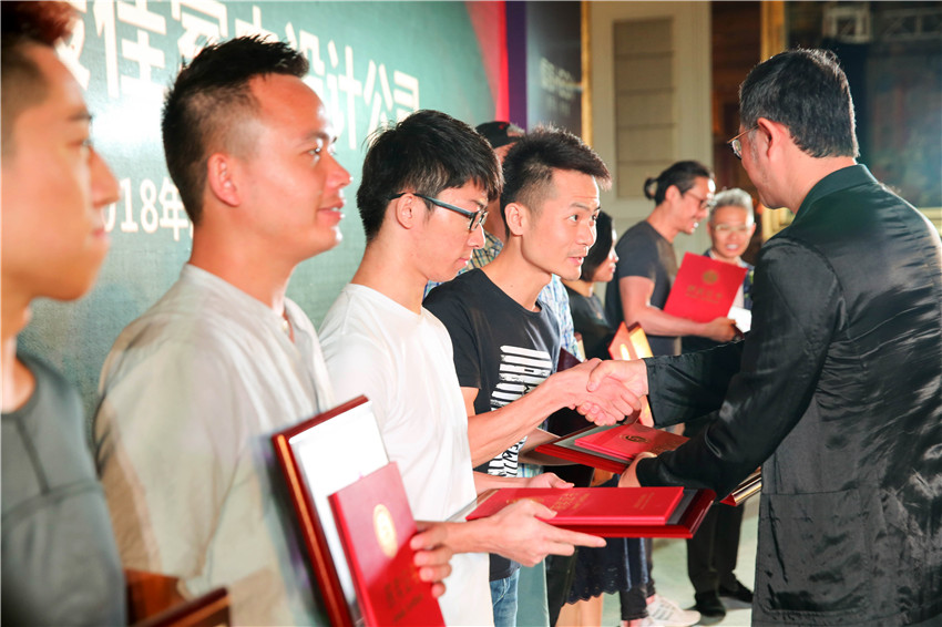 尚策室内设计顾问(深圳)有限公司创始人兼设计总监李奇恩先生与深圳市墨客环境艺术设计有限公司创始人兼设计总监王勤俭先生为获奖者颁奖。
