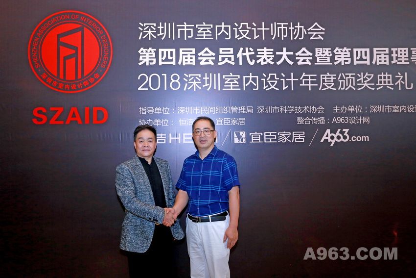 深圳市于强环境艺术设计有限公司设计总监于强先生及深圳市昊泽空间设计有限公司设计总监韩松先生为获奖机构代表颁奖。