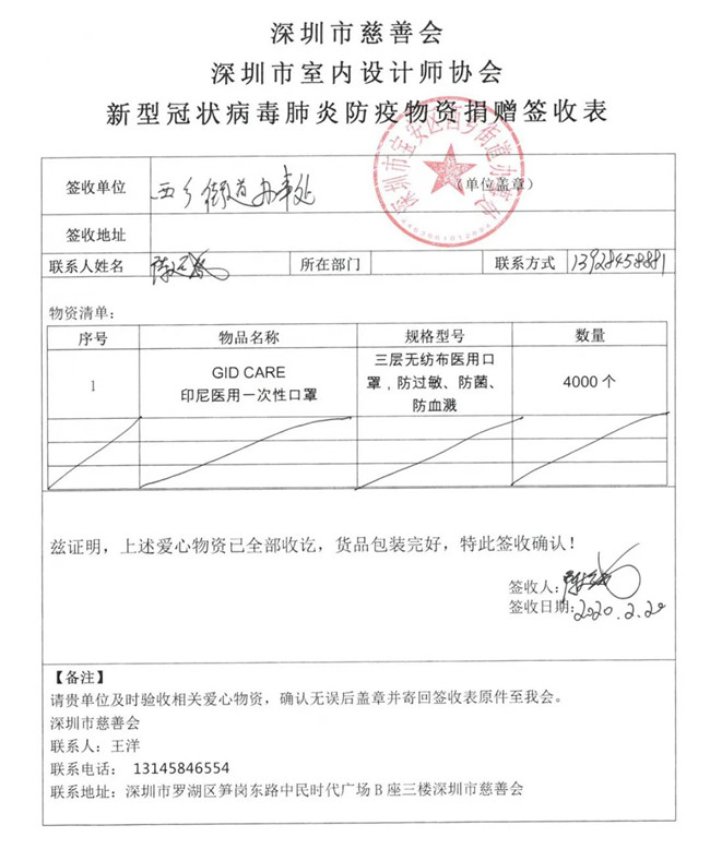 【深晚报道】1万个德国进口外科口罩送到基层 深圳市室内设计师协会为“抱薪者”献爱心