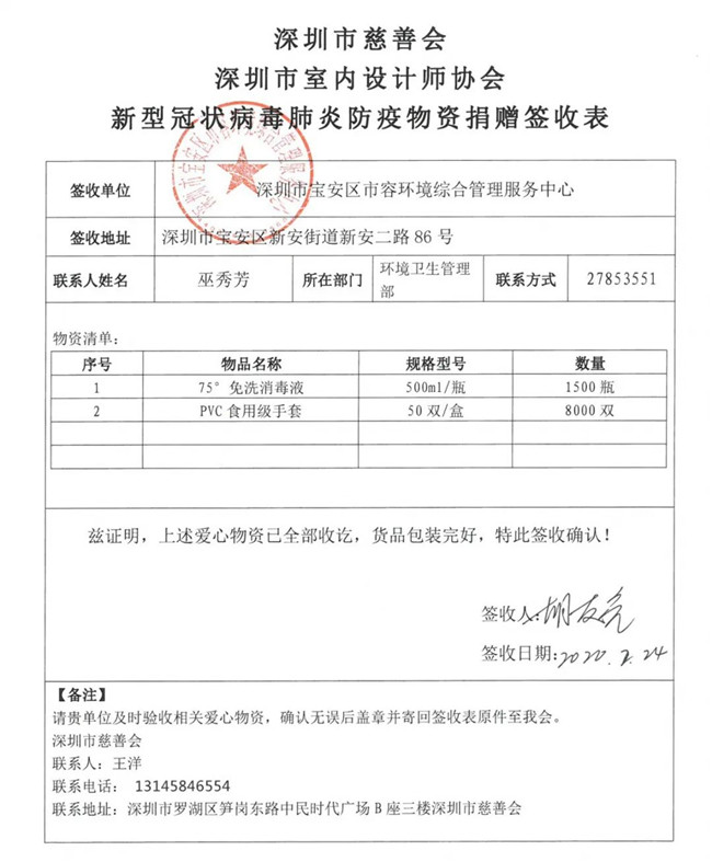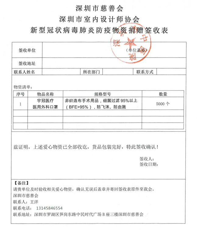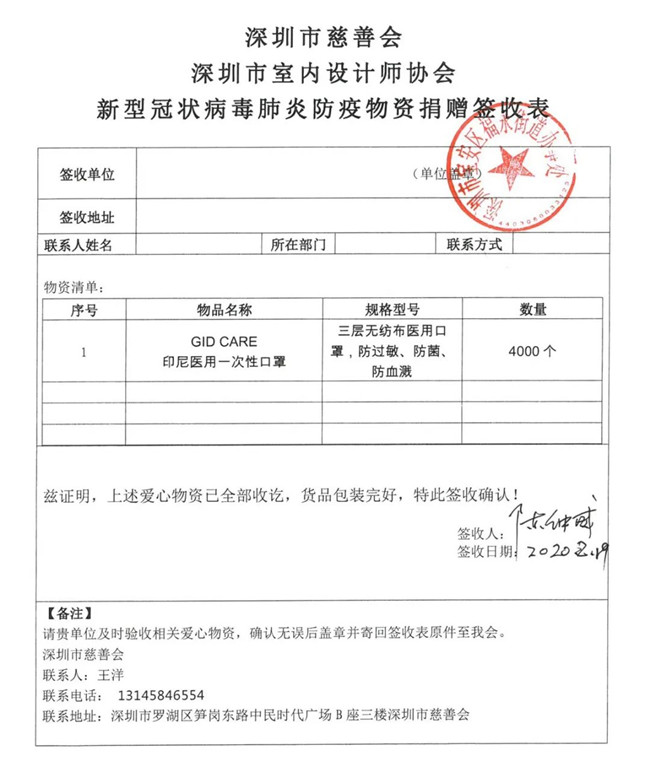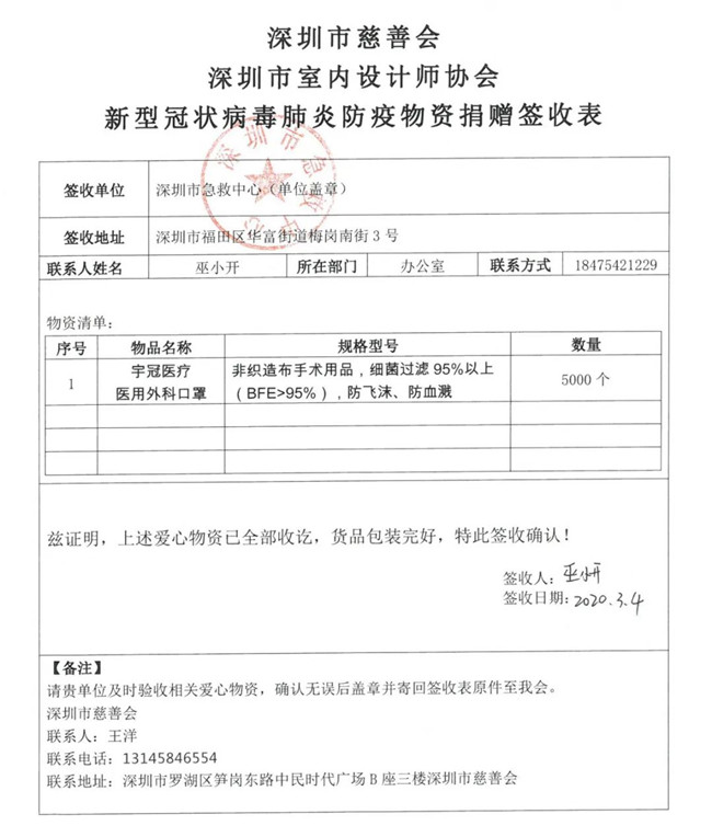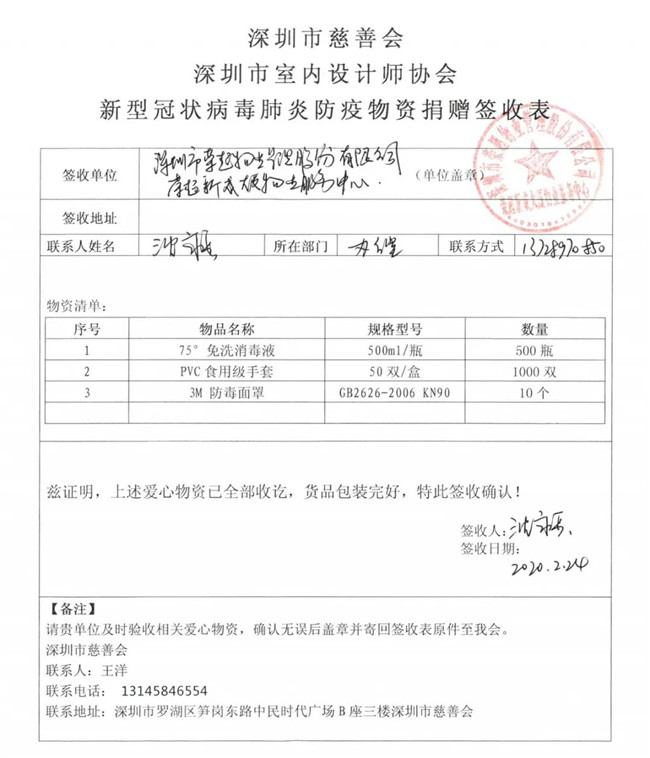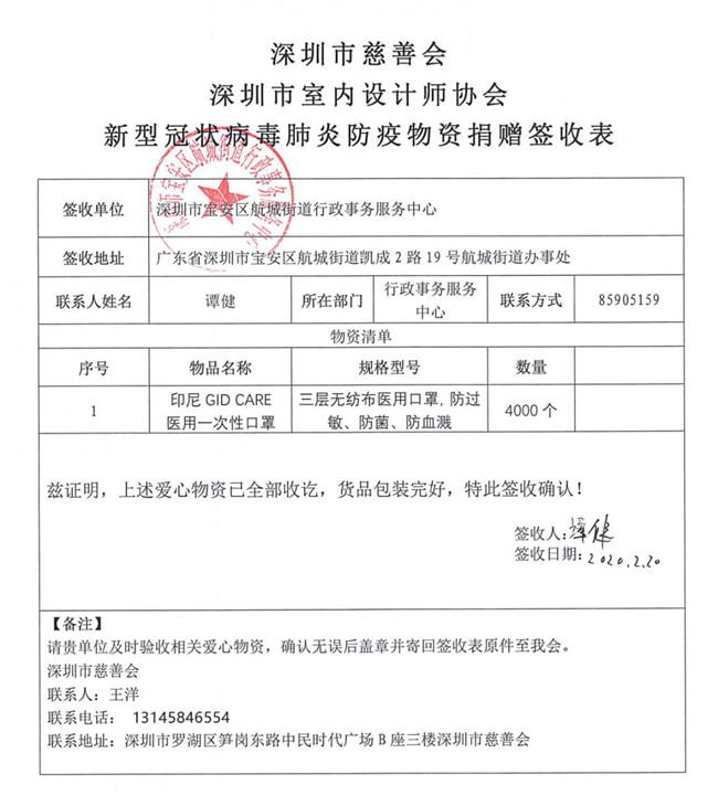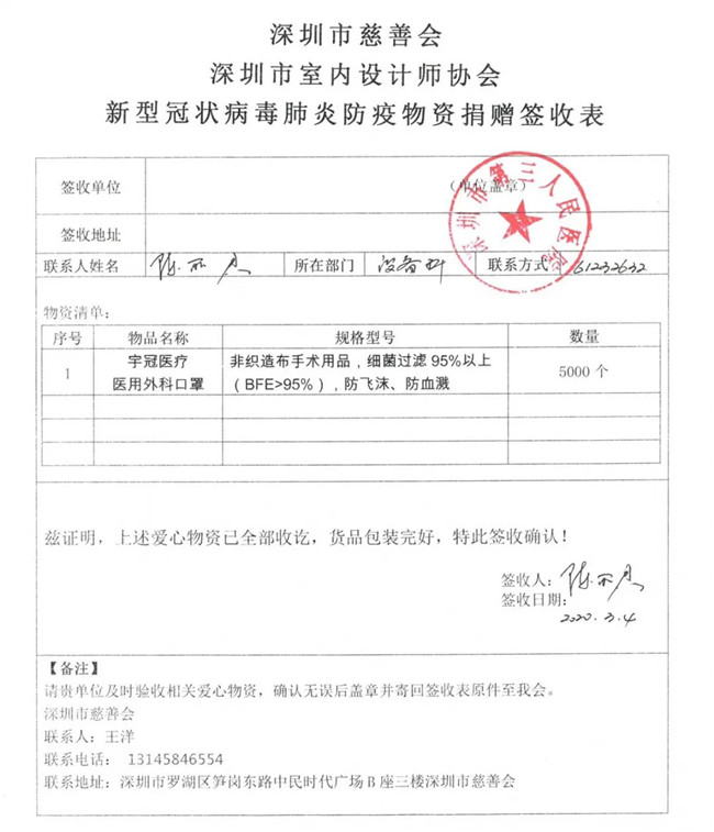 为了更好地做好捐助行动保障工作,深圳市室内设计师协会特设立“抗击新型冠状病毒捐助行动执行委员会”,并与深圳市慈善会等联动,采购、发放分配防护物资,将宝贵的医疗物资有效地用于最急需的的地方和人员。