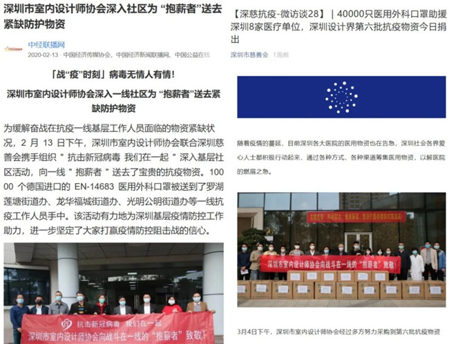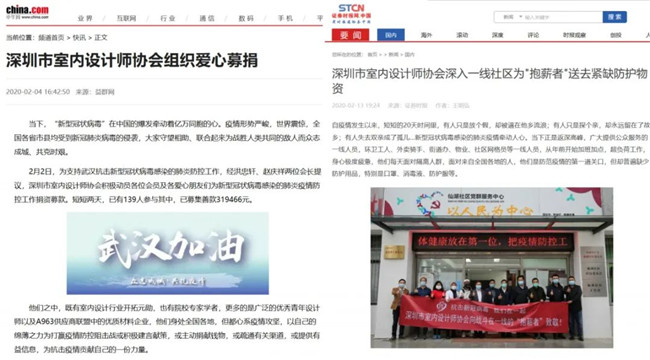 "抗击疫情,我们在一起",在深圳市室内设计师协会动员组织的捐资募款大爱行动中,各大新闻媒体纷纷给予报道,凝聚起"众志成城、共克时艰"的磅礴力量。