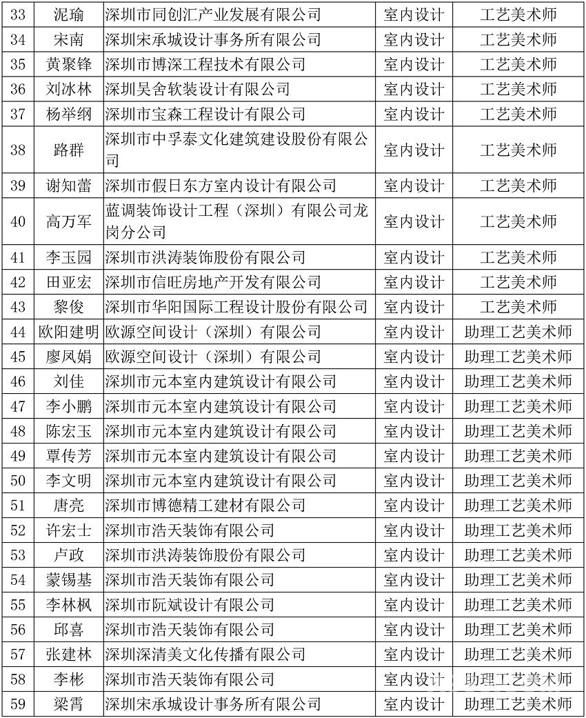 附件:2018年度深圳工艺美术(室内设计)专业技术资格评审委员会评审通过人员公示名单